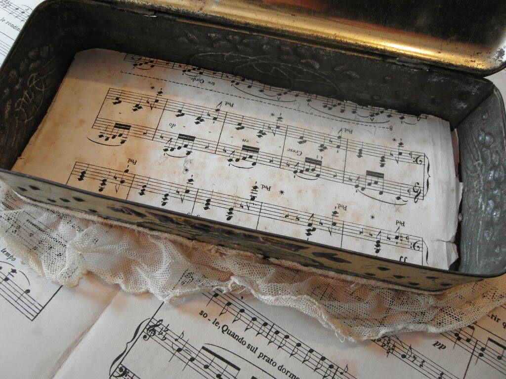 I have a large collection of antique sheet music, so set to work using these in my crafting too...