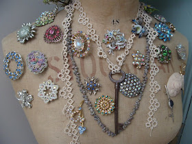 I’ve included lots of photos of some of the vintage costume brooches that I have found over the years. These are a passion of mine, after my love of antique and vintage textiles, and are something that I often like to add to my hand made items. Their diversity of design and materials are what fascinates me and when I add the perfect piece to a handmade item, it seems to bring it to life.
